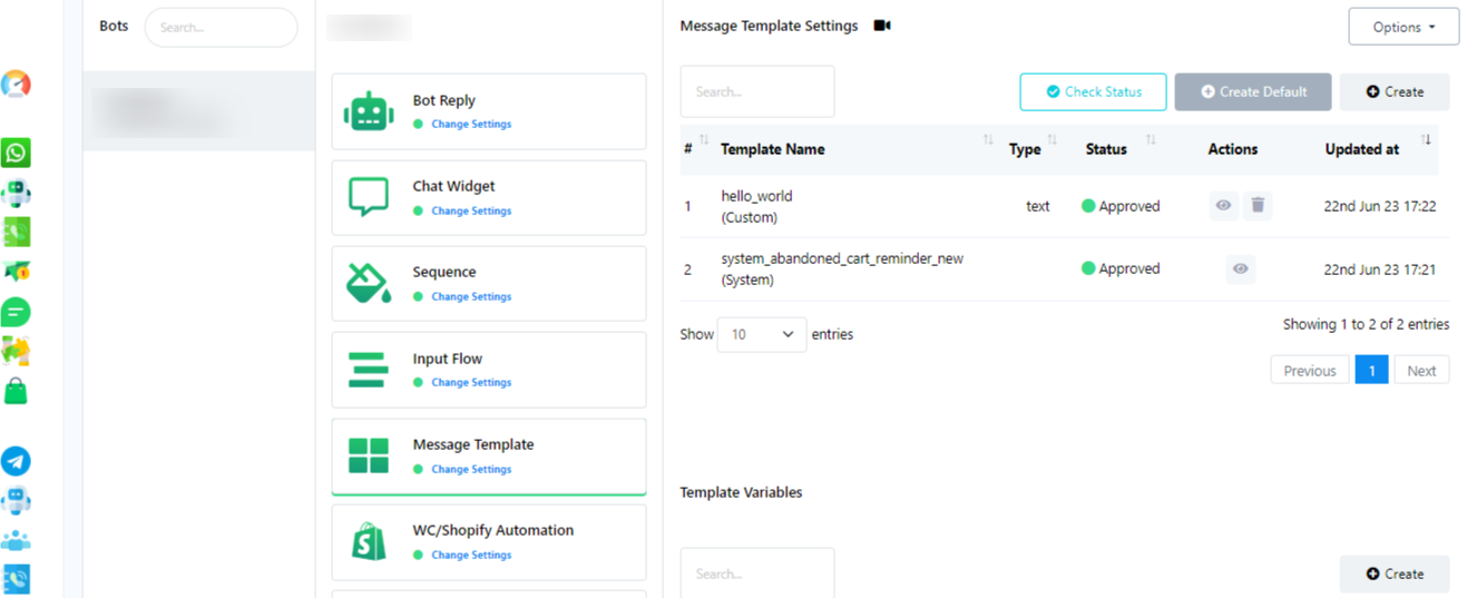 - Go to WAScale Dashboard and navigate to the Bot manager section.